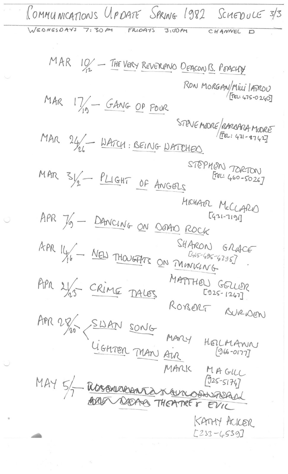 Michael was series co-producer in 1980 and 1981 which meant helping plan the series and doing camera work or sound with me. We were both members of the video coop